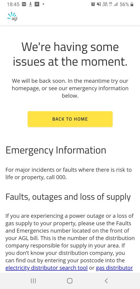 The above image us what the AGL website has been saying every time i go through the online registration page
