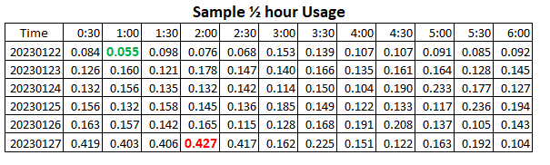 Below is the NEM format file for the 29th Jan for my usage (30min)