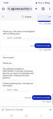 I have heard nothing about my enquiry and still the bill is due on the 3rd! What is happening with my enquiry? Once again I am in the dark! Agl has not contacted me in any form except to pay it! Where is my help?