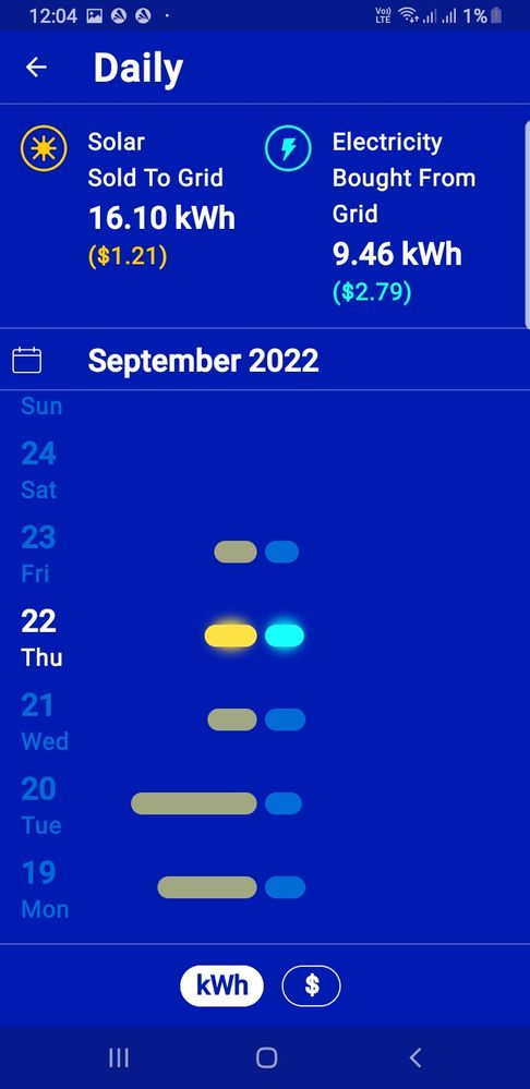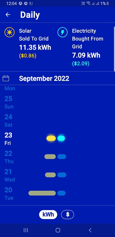 For 1 Oct 15.68 kWh, was credited with 1.23 dollars;