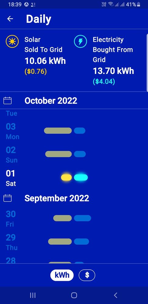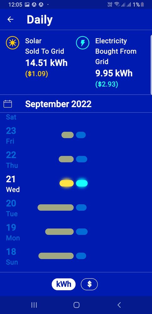 For 2 Oct 21.17 kWh, was credited with 1.68 dollars.