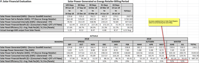 I might suggest you compare the daylight hours drawn from the grid verses your FIT and Solar Inverter reports to see how much solar is offsetting your daylight consumption. You can also look at your solar panel system efficiency by taking the total kW divided by your peak kW. This should be above 50%.