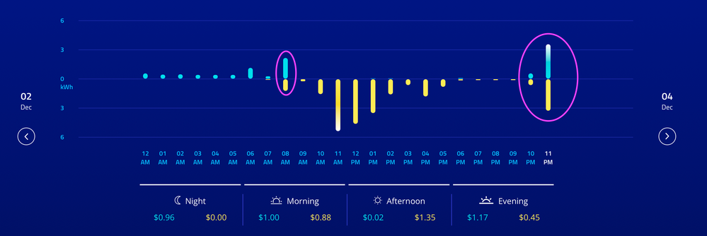 I have a battery can someone explain what might be happening here. it looks like I'm being charged as well as feeding in, I get the 8am as usage may out weigh generation, but at night ? my system shows about 4kwh, this is almost 8Screenshot 2023-12-06 at 9.09.27 am.png