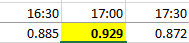 Have added a time line to the row for the date in question and can see that for the usage period 16:30 to 17:00 I consumed 0.929 kW.