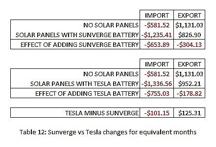 This is a comparative study of what actually happened over the period for which we had solar panels only, compared to the period when we had the Sunverge battery as well, and is by far the clearest indication of what the Sunverge system cost us, and what the Tesla system will save us.