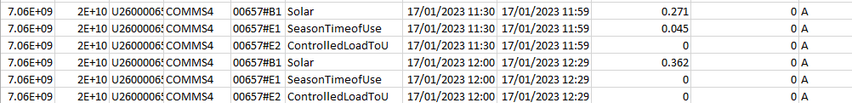 Now if you have only just added solar got to the bottom of the file to see you current meters (the file may contain data for up to the last two years) I have picked a couple of days ago.